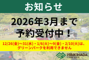 本キャンプ場の予約は、毎月5日12:00に、3か月後の1か月分を一斉に受け付け開始しております。